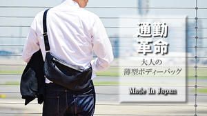 これからは手ブラ通勤!普段使いから出張・旅行まで使えるイタリアンレザーの薄型ボディーバッグ